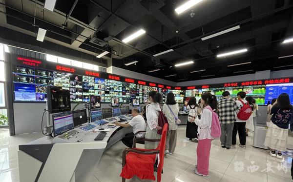 师生们先后参观了西安广播电视台(集团)电视剧艺术中心、各广播频率演播室、融媒体智汇中心、4k高清演播室、《原点新闻》《学习强国》西安学习平台编辑部,实地了解了西安广播电视台节目采集、制作以及媒体融合发展情况。