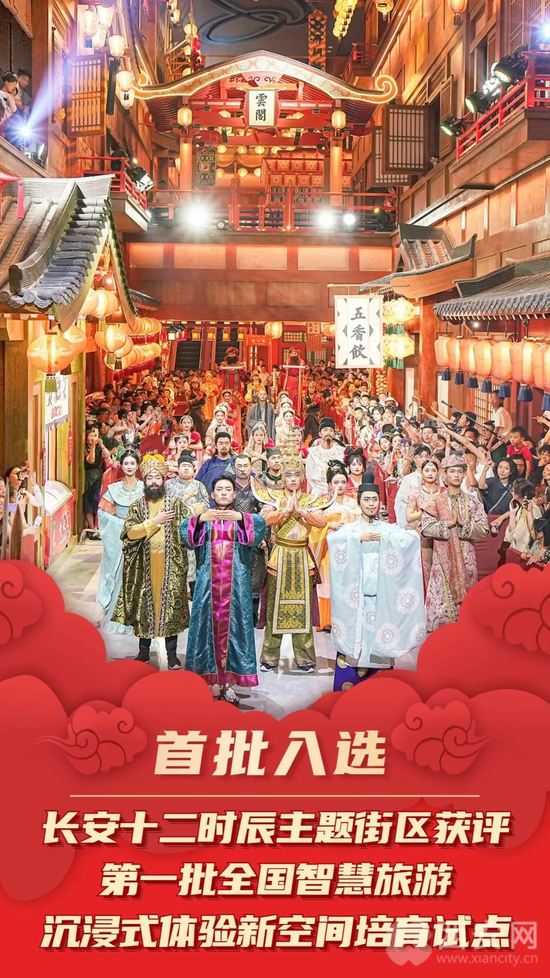 作为全国首批智慧旅游沉浸式体验新空间培育试点之一,长安十二时辰主题街区依托2.4万平方米的商业空间,结合电视剧《长安十二时辰》IP与唐文化内容,构建了一个集全唐空间游玩、唐风市井体验、主题沉浸互动、唐乐歌舞演艺、文化社交休闲等为一体的全唐场景空间。