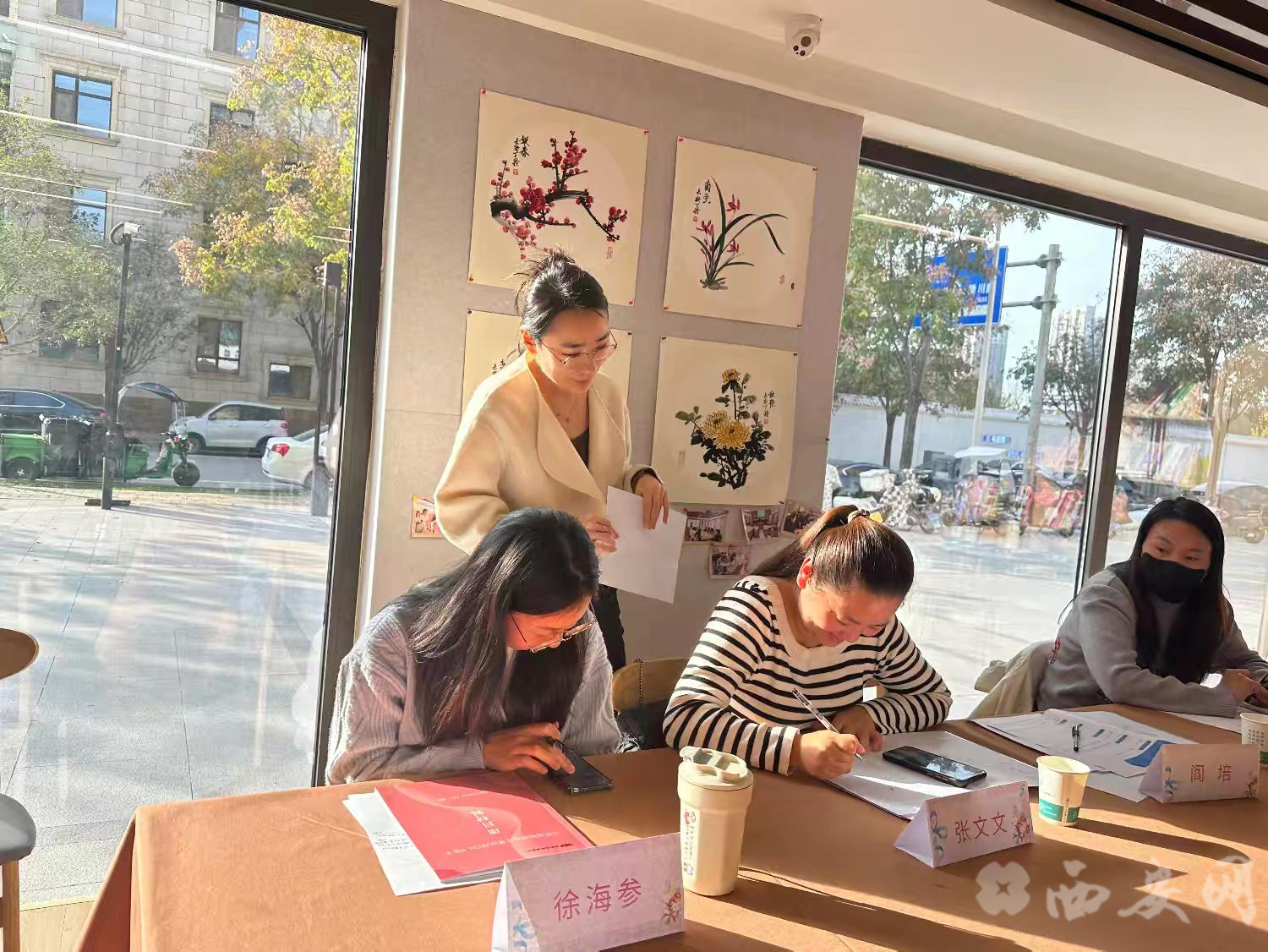 学习间隙,老师以“涂鸦传递”小游戏活跃氛围、舒缓压力。全职妈妈们围坐接力创作,你一笔我一画,零散线条化作创意作品。老师顺势引导:“职场之路如接力,每段经历都是独特笔触”,现场响起会心笑声,大家在互动中拉近距离、相互鼓励。