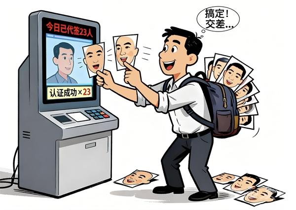 考勤不是走过场,打卡更不是演戏的道具。基层工作的价值,从不在打卡机上的数字里,而在群众满意的笑容中。用面具糊弄打卡,糊弄的是组织信任,更是万家灯火的期盼。整治这种歪风,既要狠刹弄虚作假的邪气,更要把评价标尺交到群众手中,让干得好不好、实不实,由百姓说了算。唯有打破“打卡即履职”的形式主义枷锁,才能让基层干部卸下“琢磨打卡”的心思,沉下心来办好每一件民生小事,让基层服务回归本真,让民心不再被敷衍。(高姗 文/图)