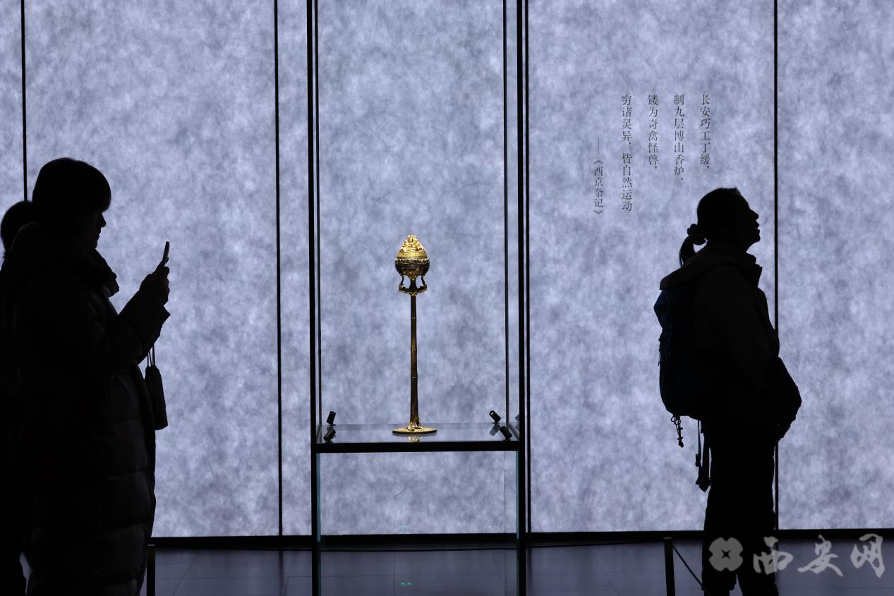 在陕西历史博物馆秦汉馆,1500余件(组)珍贵文物静静陈列,从见证军事制度的杜虎符、象征皇权的皇后玉玺,到展现丝路繁华的鎏金铜蚕、工艺精湛的鎏金银竹节熏炉,通过多处大型多媒体装置,让观众从视觉、触觉、听觉等各方面实现沉浸式古今对话,将沉睡千年的秦汉文明画卷徐徐展开。