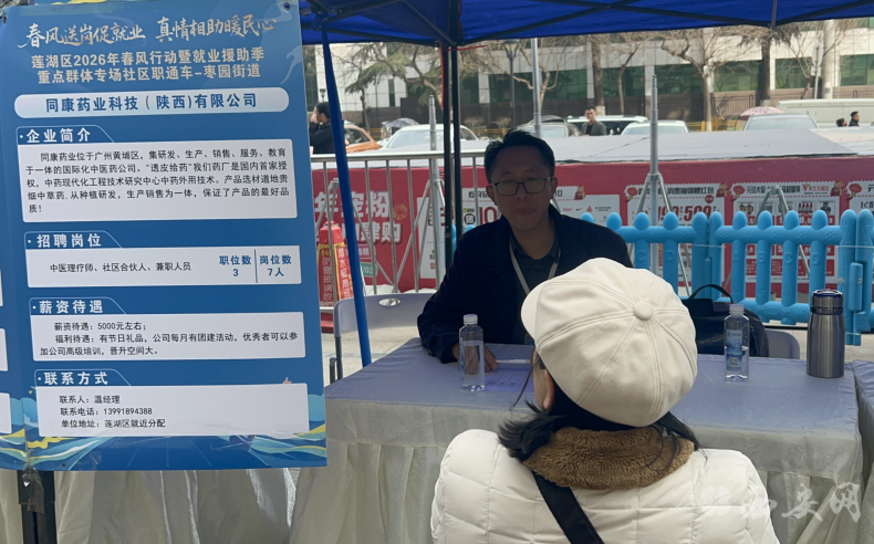 为促进辖区重点群体实现高质量就业,3月12日下午,莲湖区人社局举办枣园街道重点群体专场招聘会,将优质岗位与贴心服务送到群众身边。活动聚焦辖区就业困难人员、退役军人、高校毕业生等重点群体,通过"岗位直通社区"的形式搭建供需对接平台,助力求职者"家门口"就业。