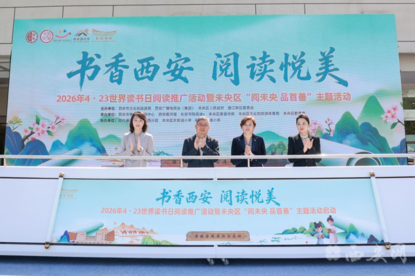 4月23日上午,由西安市文化和旅游局、西安广播电视台(集团)、未央区人民政府、曲江新区管委会共同主办,西安市青少年活动中心、长安书院阅读+、西安图书馆、未央区委宣传部、未央区文化旅游和体育局、未央区教育局共同承办的“书香西安·阅读悦美”2026年“4·23世界读书日”阅读推广活动启动仪式在西安市青少年活动中心广场举行。本次活动深入学习贯彻习近平文化思想、认真落实《全民阅读促进条例》,以“书香西安·阅读悦美”为主题,串联西安市青少年活动中心、长安书院、汉长安城国家遗址公园等文化地标,着力打造具有西安特色的阅读品牌,设计“走读西安”精品文旅线路,实现全民阅读与城市文化、科技、生态、健康和教育等领域深度融合。